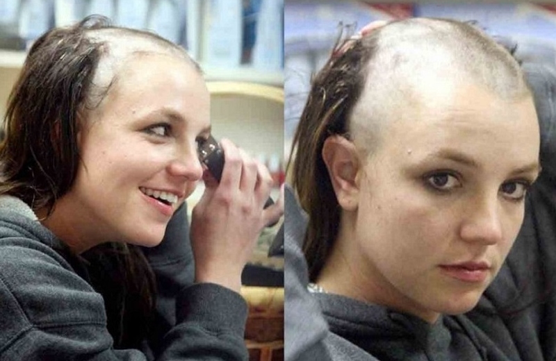 La artista visitó la peluquería Esther's Haircutting Studio en Tarzana, California, donde solicitó que le afeitaran su característica melena morena. Ante la negativa de la dueña de la peluquería, Esther Tognozzi, la cantante tomó la iniciativa y procedió a cortarse el cabello con una maquinilla mientras los paparazzi capturaban el incidente a través de las ventanas.
