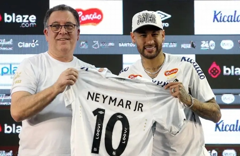 Después se montó en su helicóptero con las iniciales "NJR" dibujadas en la cola y, al final de la tarde, aterrizó sobre el césped de un campo de entrenamiento del Santos para firmar el contrato. El colofón fue la fiesta en el Vila Belmiro.