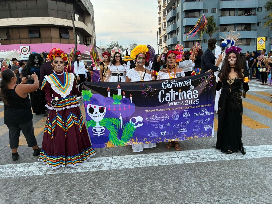 Veracruzanos y visitantes se dieron cita en el bulevar Manuel Ávila Camacho para disfrutar y admirar el ya tradicional Carnaval de Catrinas, que este año llegó a la séptima edición.