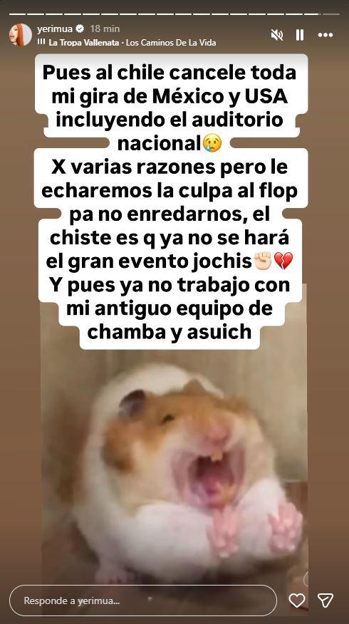 La influencer y cantante veracruzana Yeri MUA sorprendió a sus fans al anunciar la cancelación de su gira tanto en México como en Estados Unidos.